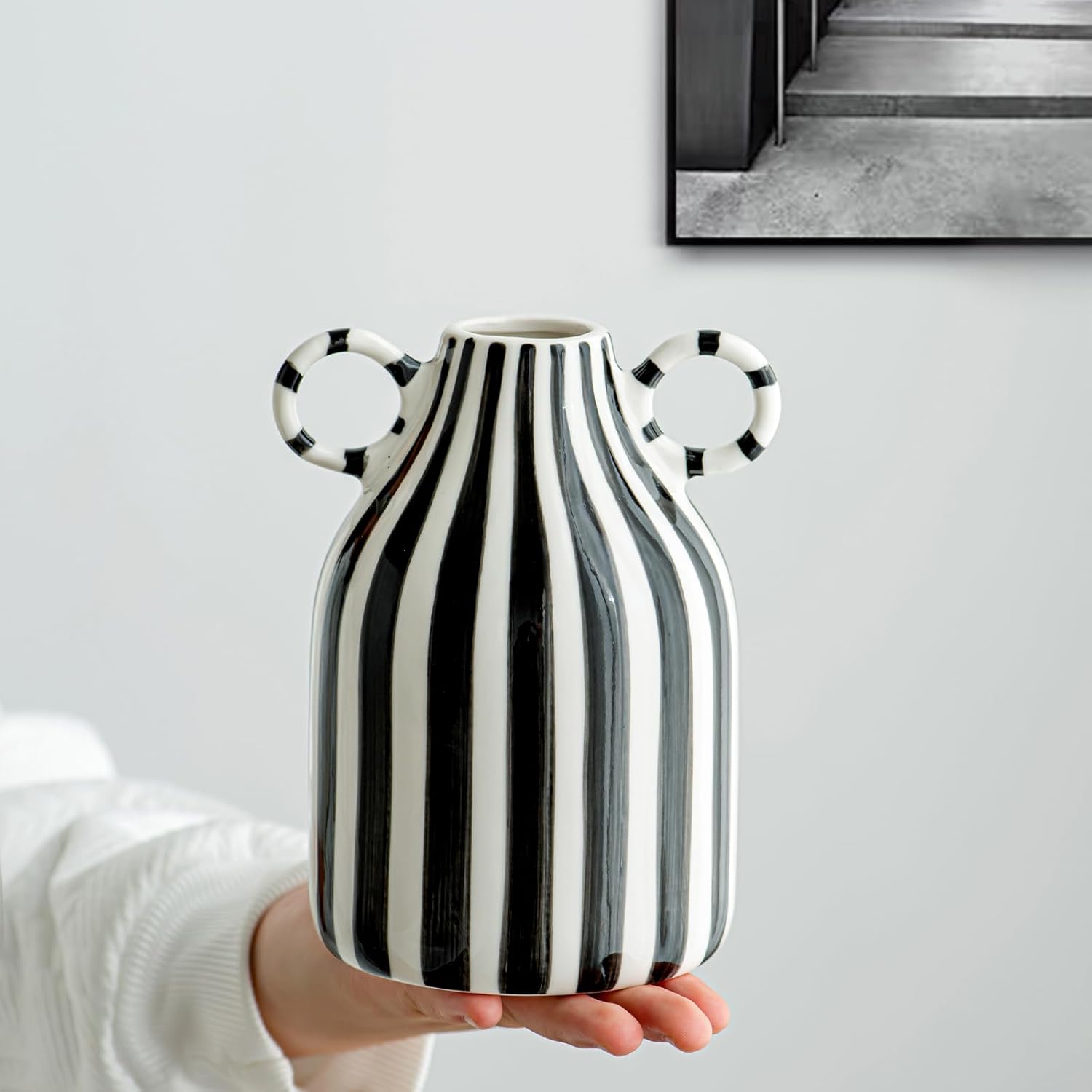 Hand-Painted Craftsmanship: Our hand-painted ceramic vase showcases exquisite craftsmanship. Its bold striped pattern adds a mid-century modern flair to any space. Use it as a centerpiece on your dining table or kitchen tabletop for a touch of elegance.