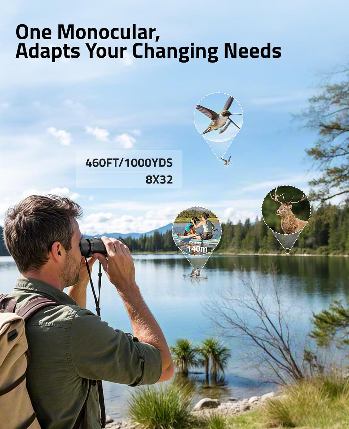 Portable & Ready Anywhere: Pocket-sized design monocular always ready to use in instantly observe birds, wildlife, or scenery during hikes, travel, spontaneous adventures
