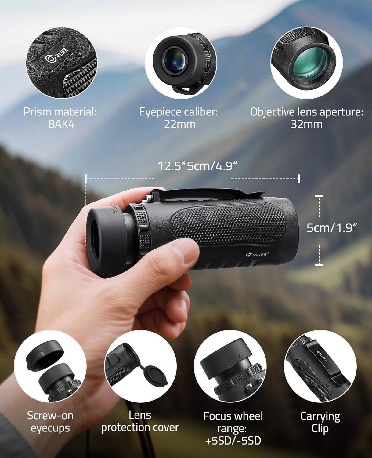 Brilliant-Definition View: Monocular scope 8x magnification and BAK-4 prism brings distant subjects closer, while 32mm objective lens gathers ample light for sharp, vivid views in various conditions