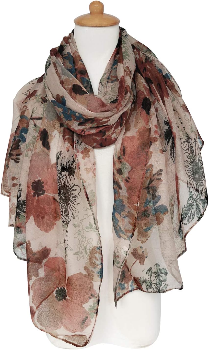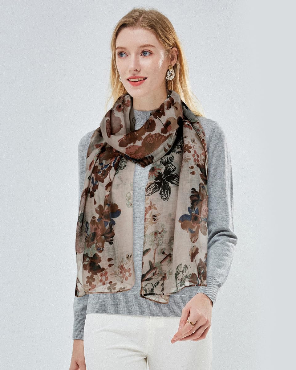 Pretty Flower Print Scarf/Lightweight Winter Wrap Shawl/Popular Floral Gift for Women Scarf Lover